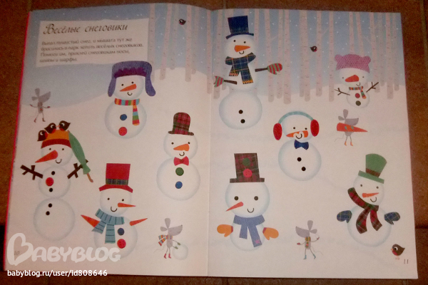 Здесь были только снеговички, а носы, глазки, варежки, зонты, шапки отдельно. Ребенок сам придумывает образы))