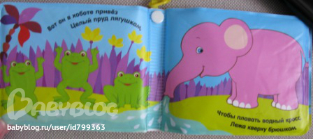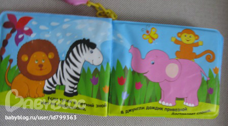 В какой-то момент пришлось на несколько дней забрать из поля зрения дочки все книжи, т.к. каждая могла быть заживо съедена. Осталась только эта, как антивандальная. С тех пор дочка с ней не расстается. Носит, листает, грызет, просит почитать и рассказать... На днях принесла ее почитать папе, и как же он удивился, когда Соня показала ему всех животных на первой странице и без ошибок....:-))