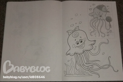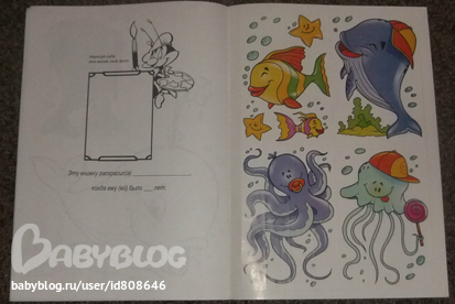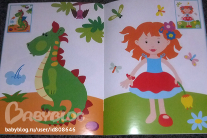 Вот приклеенная наклейка. Ну какой ребенок разукрасит так же красиво, чтобы получилась целостная картинка? А так вклеиваются практически все наклейки в этой книжке. Темке пока не давала, разукрашивать не наша стезя, может дорастет еще.