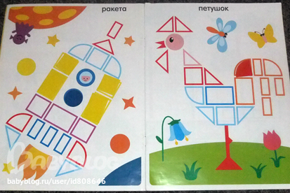 А вот эти скупала в Ашане пачками))) Конечно не именно ЭТИ, а серию))) На страничке одна из картинок светлее остальных и ребенку видно что и куда клеить. К сожалению все их мы отдали на растерзание в сад. В том смысле к сожалению, что показать вам я их теперь не смогу) Но рекомендую. Копеечная книжка, она с лихвой себя отравдывает.