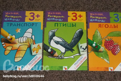 Это разукрашки. Хороши тем, что ребенок сам приклеивает себе образец.