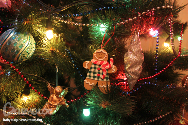 И вот такой красивый и я бы сказала вкусный на вид пряничный человечек занял свое почетное место на нашей елке. Он даже успел там повисеть немного перед тем, как мы ее разобрали.