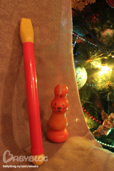 Интересный зайка, у него нужно откручивать нижнюю и верхнюю часть, замечательный тренажер для моторики пальцев, но пока дочка его еще не освоила. А вот дудочку очень полюбила, ходит и дудит теперь.)))