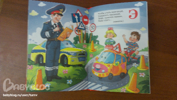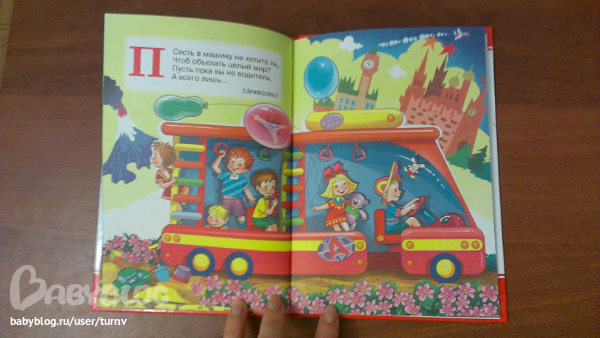 Книжчка риятно удивила...она не большого формата.. на каждую букву стишок , про машины..про различные марки автомобилей...яркие симпатичные рисунки..