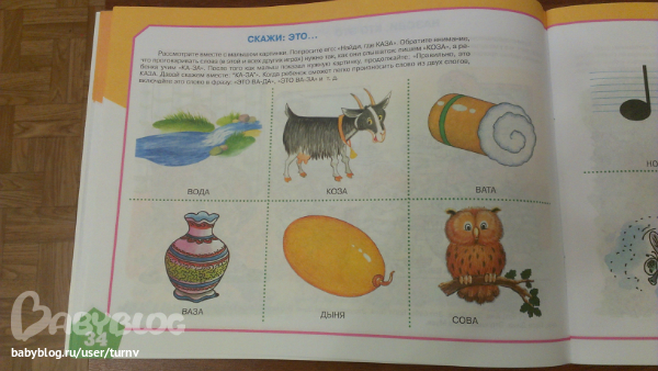 Этот мне понравился немного меньше, хотя в нем очень много полезной информации....вроде и ничегь особо нового в нем нет, но при этом он как бы систематизирует информацию... чне этот альбом напомнил книги типа " моя певыя книга"и тому подобные издания...но он предназначен для деток от 3 и более, хотя очень многое можно делать и с двухлетами...но есть части, с заданием например "пересказать" небольшой рассказ...есть задания на "правильность произношения звуков"....