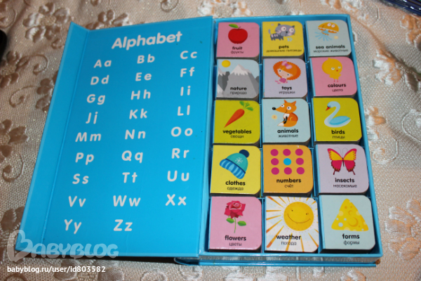 Книжка с маленькими книжечками-кубиками внутри произвела фурор у ребенка! Перебирает кубики по несколько раз в день, учим простые английские слова, доча раскладывает кубики в ячейки, подбирает сама картинки. Даже не ожидала, что ей так понравится!