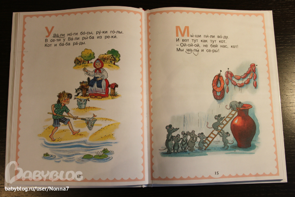 Когда с этой книгой закончим, то начнем читать рассказы, вот из этой серии:Здесь слова уже не разбиты по слогам дефисами, а написаны слитно и лишь снизу выделены слоги. Мы, кстати, когда начинали учить слоги, карандашом именно так их выделяли.