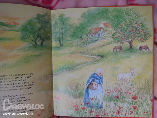 В этой книжке всего одна сказка, неспешная, текучая, пахнущая свежими цветами и яблоками. И очень красивые карандашные рисунки цвета лета, солнца и цветущих лугов. В одной маленькой книжечке нарисована вся деревенская жизнь. По ней можно даже малышей знакомить с природой, столько всего на картинках изображено.