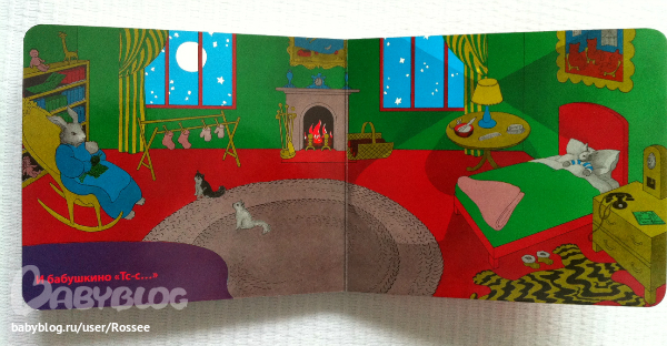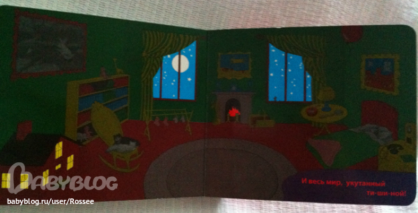А последняя страничка, на которой все обитатели комнаты спят, просто волшебная - она светится! на фото не получилось передать этот эффект, все погрузилось в сон,и только Луна, Огонь и Свет в кукольном домике продолжают "разговор".