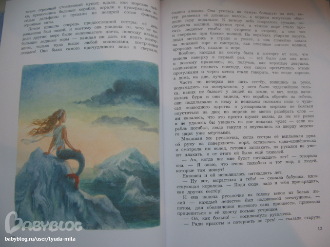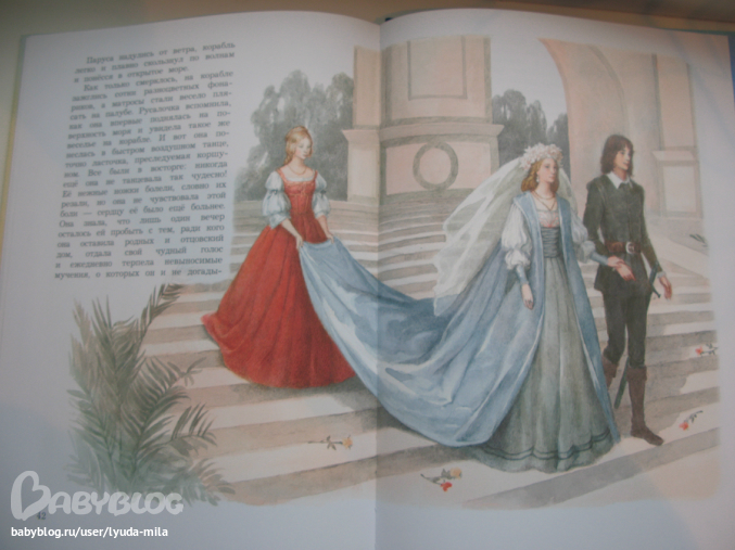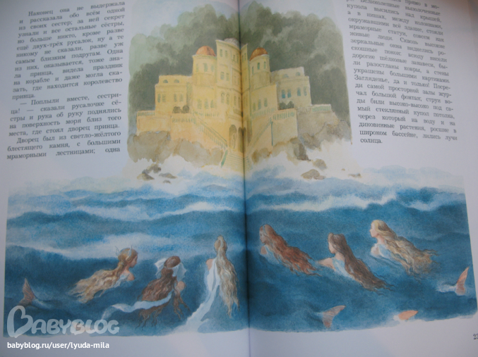 Ну и "Русалочка"! Конечно у меня есть Русалочка с иллюстрациями Ломаева и в сборниках эта сказка тоже есть, и я не сторонница дублей,но пройти мимо этой книги не смогла, т.к. цена всего 149руб, без уценки, без скидки, ПРОСТО 149 РУБ., в обычном книжном, где цены в два раза больше, чем в интернет-магазинах!!! Ну как, скажите, не появляться в домашней библиотеке дублям, когда такую красоту продают за такие деньги!!! В Озоне она стоит 342 руб. Так что всем советую повнимательнее просматривать книжные магазины, может и вы найдете что-то для себя. А для тех, кто еще не определился с выбором "Русалочки" выложила развороты с нежнейшими акварельными рисунками Анастасии Архиповой, ну и конечно концовку, которую сейчас часто режут:)