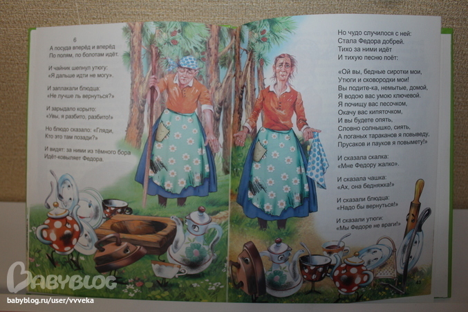 У нас тоже такая книга есть, нам ее подарили. Но вот пародокс.Хотела книгу выбрасывать, дома есть замечательный книги Чуковского с иллюстрациями Калиновского, Васнецова и др.Но дочь время от времени просит читать этот ужасный экземпляр, очень ей нравится из этой книги "Федорино горе".