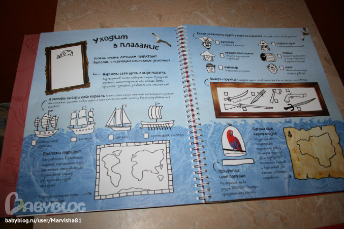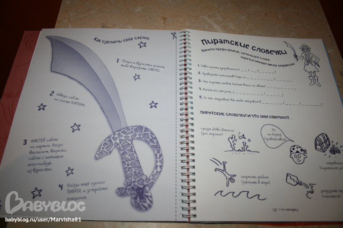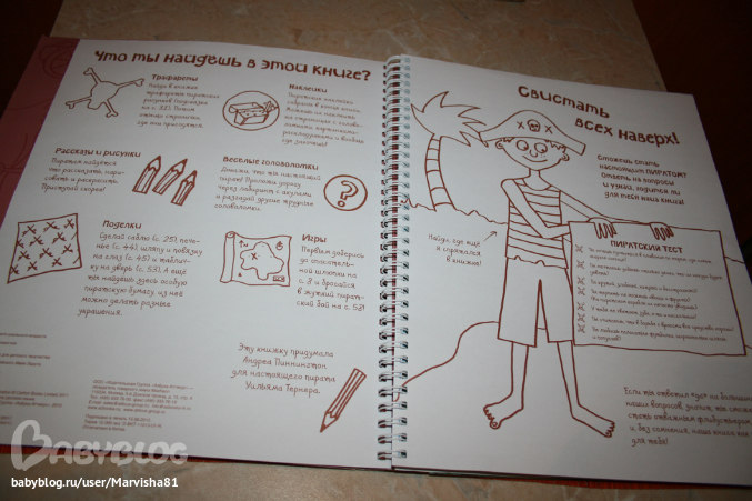 Издательство Махаон,отличные развивающие задания: рекомендации по изготовлению экипировки пираты,найди отличия,наклей,дорисуй,придумай...много всего в этой книге,вот иллюстрации: