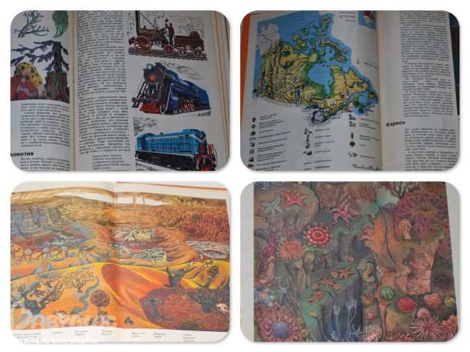 Дедушка насмешил заявлениями, что книжка хоть и советская, но без политики и всякого там коммунизма. Ага-ага, не будем считать статьи с названиями "Интернационал" и "КПСС" пропагандой :) Даже обычная заметка про самолеты в обязательном порядке содержит информацию про советских летчиков и конструкторов, которые впереди планеты всей :) Так что читаю выборочно, тк Плюшечке она пришлась по вкусу. Особенно такие развороты любит: