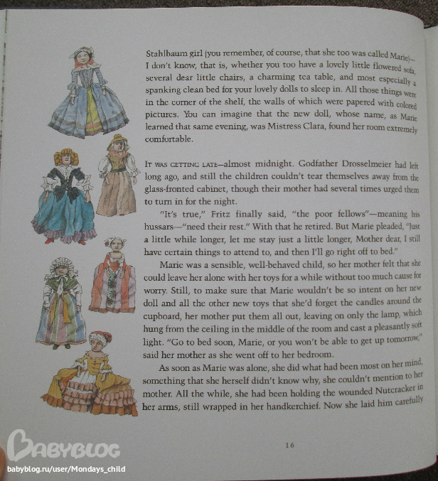 Иллюстрации у него очень необычные, но мне нравятся. В "Щелкунчике" иллюстрации на каждой странице, есть совсем маленькие, на полях.