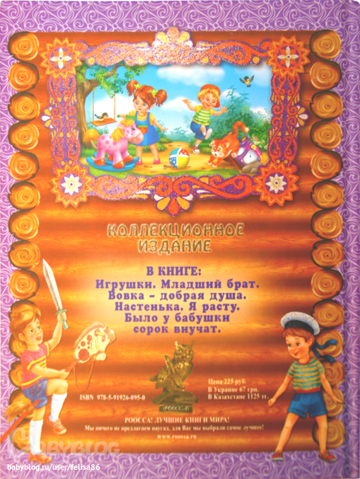 У меня целый склад этих книг - подарила бабушка (моя мама). Часть я в детский сад отдала, часть в шкафу пылится. Ну куда их девать??? Я уже маму свою просто на коленях умоляю не покупать ЭТО. Но она как не слышит, все тащит и тащит. Очень они ей нравятся. У них на работу распространитель приходит, талантливый "менеджер по продажам" видимо.
