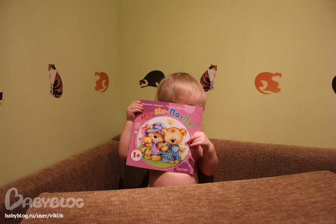 Нам от моей племяшки досталась одна книга из этой серии, показала, Юрке понравилась (какая щас не помню, она уже вся раздербаненая была). Купила мама-папа, не пошла особо, там не такие интересные картинки. Мои поиснения вообще не слушает толком, просто листает, смотрит. Купила на днях книгу Первые шаги. Первые слова, это сборник нескольких в одном издании. Юрик в восторге, листает, рассматривает картинки и целует спящего зайку =)