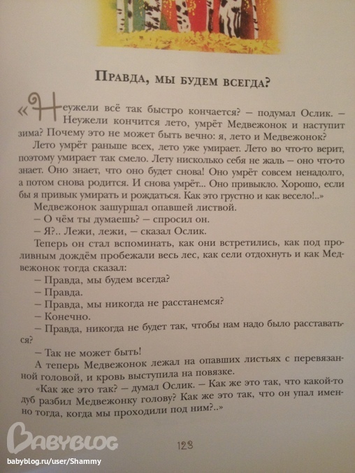 Книга получилась очень теплая, детская. При этом глубокая и мудрая, она вся - лишь повод на диалог между взрослым и ребенком на самые жизненные темы, которые пугают нас, родителей (например, тема смерти, рассказ о которой я выложила выше).