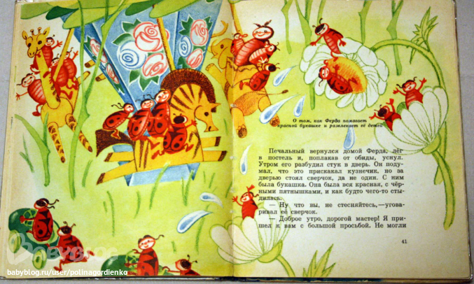 Сразу скажу, что мне лично милее иллюстрации в стареньких, родных книжечках. Это и ясно, ведь они запали с детства. И формат книг больше - А4. Еще нравится, что картинок больше, особенно в Ферде, есть на весь разворот. И в обеих книгах есть иллюстрации ч/б, причем очень симпатичные. Так что смотрите и пишите, а как вам такое издание? Хотелось бы в таком оформлении купить эти книги (если бы переиздали) или вам наравятся сегоднешнии варианты?