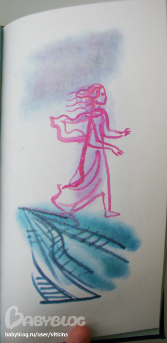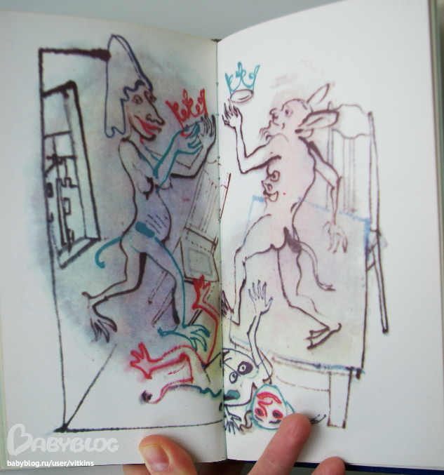 Одна из самых неоднозначных работ братьев Траугот, на мой взгляд. Издание узкое, длинное, подарочный вариант похоже. Текст на голубых листах. Рисунки – на белых. Сразу предупреждаю – фотографии ну совершенно не могут передать всего обаяния этой книги (да, да, именно обаяния), понимаете, ее надо держать в руках, трогать эти твердые листы, ну и конечно не просто так разглядывать «эти странные рисунки», а читать их вместе с текстом. Непростым текстом... все помните, какой он.