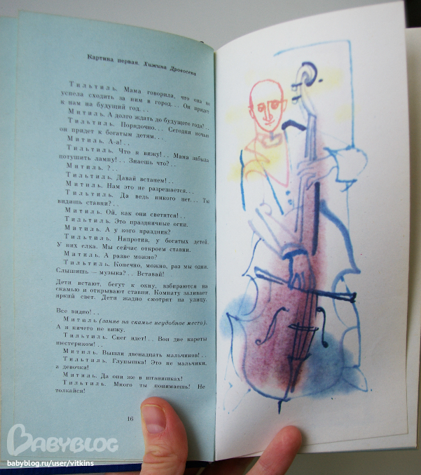 Честно скажу, если бы этой книги не было в моем детстве, то, встретив ее во взрослом возрасте, я скорее всего бы не купила ее. Просмотрела несколько минут – и не купила. Потому что нет времени вжиться-понять, нет детского восприятия, какого-то безоценочного восприятия… Эх, сложно объяснить :) В общем, я очень рада, что у меня была именно эта Синяя птица. Поверьте, она произвела на меня очень сильное впечатление в детстве. И понятно, речь не только о тексте.