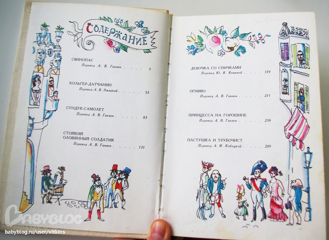 Содержание. 5 сказок. Пастушка и трубочист пересекаются с предыдущей книгой – но здесь они другие, это тоже интересно. Как видите, здесь уже одни акварели, нет пера… И немножко другой стиль рисования. Но вы посмотрите какие здесь краски! Какие сочетания цветов! Разве кто-то еще так рисует??