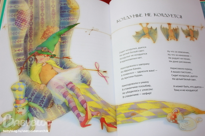 В основном книга для детишек постарше. Но есть много стишков и для нашего возраста, которые я с удовольствием читаю, а доча внимательно слушает. Вот например.