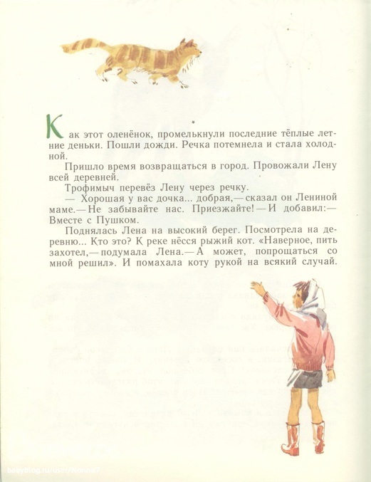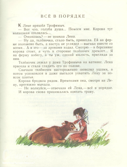 Эти рассказы живые, они проникают в душу маленьких читателей и находят в ней отклик. Владик, так хорошо понимал их, даже в тех местах, когда я думала, что для него не ясно о чем говорит автор. Вот, например, выражение: «…лес в речку опрокинулся…», где лосенок, увидев отражение леса в воде, не мог понять, откуда же ему пить, пока копытцем до водяной глади не дотронулся. А Владик, уже в самом начале все понял и с радостью мне об этом сообщил. А какая бабушка у Лены замечательная, добрая, ласковая, внимательная. В конце книги сын сказал: «Мам, это очень хорошая книжка!»