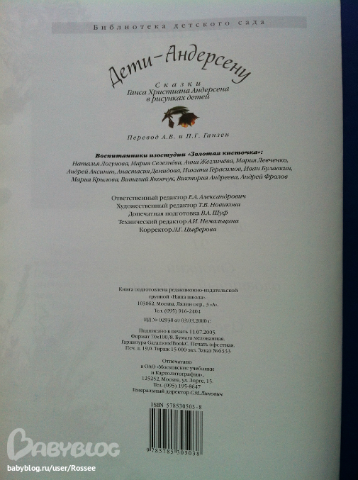 сказкилет Андерсену отмечалось в 2005 году. и появилась в нашей библиотеке эта книга. Подарили старшей дочери в 4 классе за успешное участие в окружном конкурсе научных проектов. Подарок, конечно, не по возрасту был, вот и лежала она у нас до последнего времени без дела...