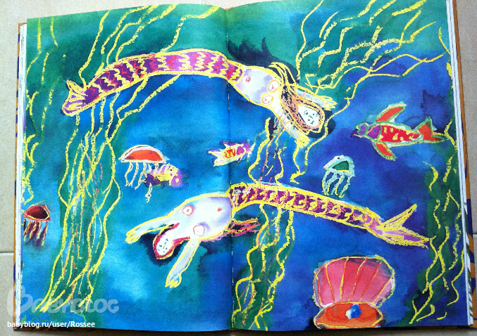 Признаюсь сразу, что тогда мне эта книга не понравилась, испугалась я этих детских рисунков, а сейчас, рассмотрев получше, вижу , что книга то шикарная. Итак, "Дети - Андерсену" Сказки Ганса Христиана Андерсена в рисунках детей. Издательство Московские учебники и Картография. Перевод Ганзен. Формат огромный! 35*25 см.Бумага мелованная. Буквы крупные.Каждая глава и сказка оформлена в своем стиле.