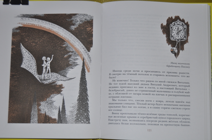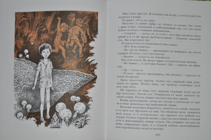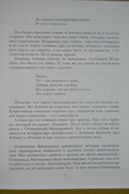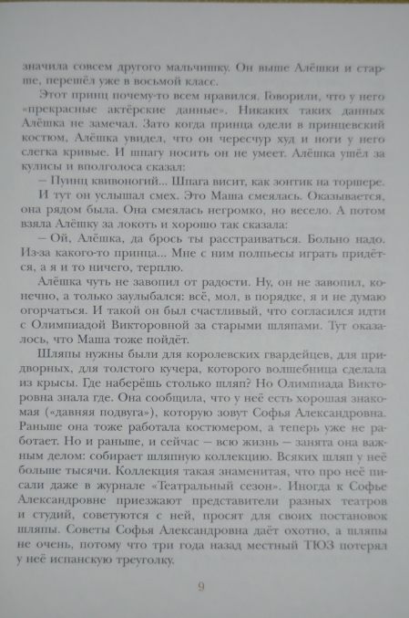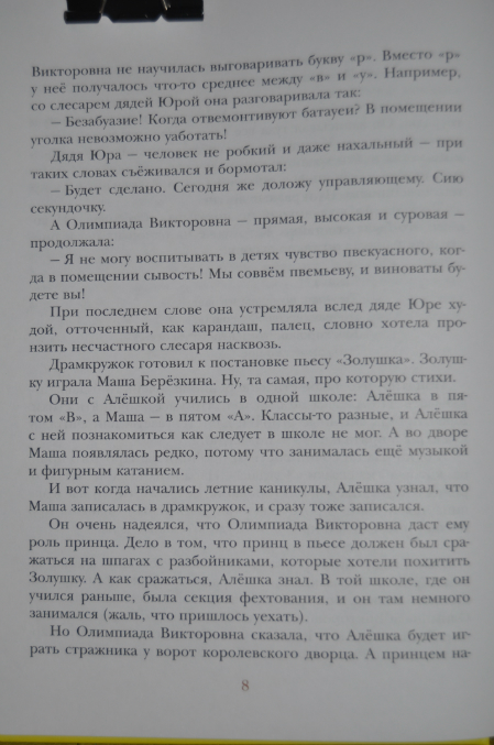 Не спрашивайте меня о тексте, я впервые держу его в руках (да, стыд мне!). Но пока ехала в метро со своими тридцатью тремя баулами, набитыми книгами, прочитала несколько первых глав (в конце сфотографировала вам первую главу на прочтение, если глаза не сломаете, т.к. я не знаю, как сделать увеличение). Люди как-то странно на меня косились, потому как ехала я с дурацкой улыбкой на лице, уткнувшись в трясущуюся книгу:) Как мне было весело! Здорово, потрясающе написано! Про школьников, про любовь, про дружбу, про мечту! Почувствовала себя ребенком (ведь правда, нельзя смеяться над дефектом речи?! Но это только взрослые понимают, а дети хохочут!) ...Пуинц квивоногий..))) Или " Я не могу воспитывать в детях чувство пвекуасного, когда в помещении сывость!" :)))