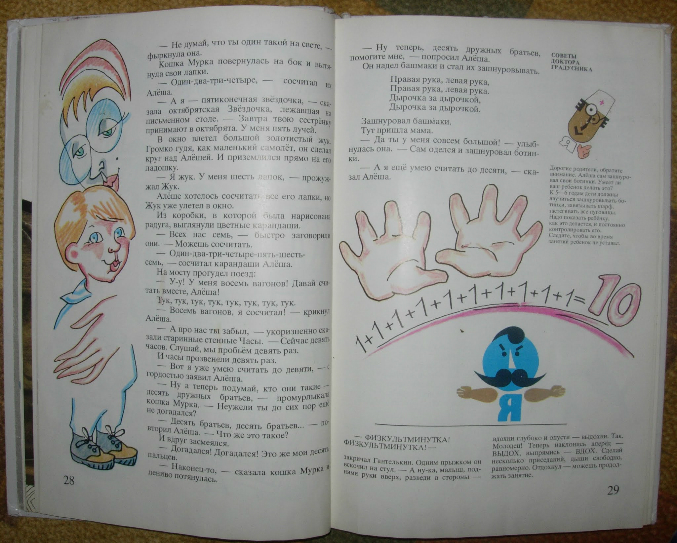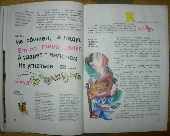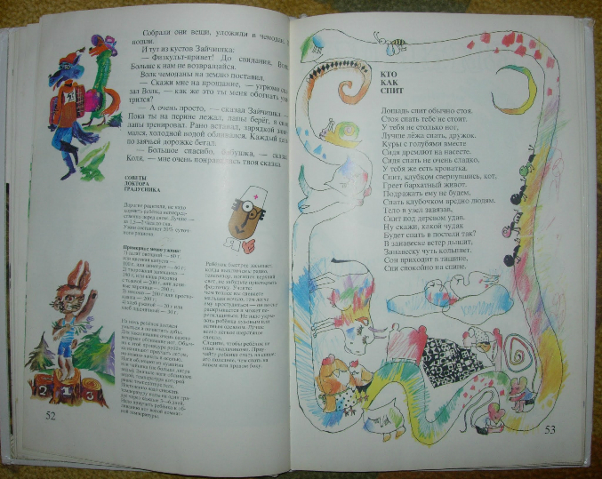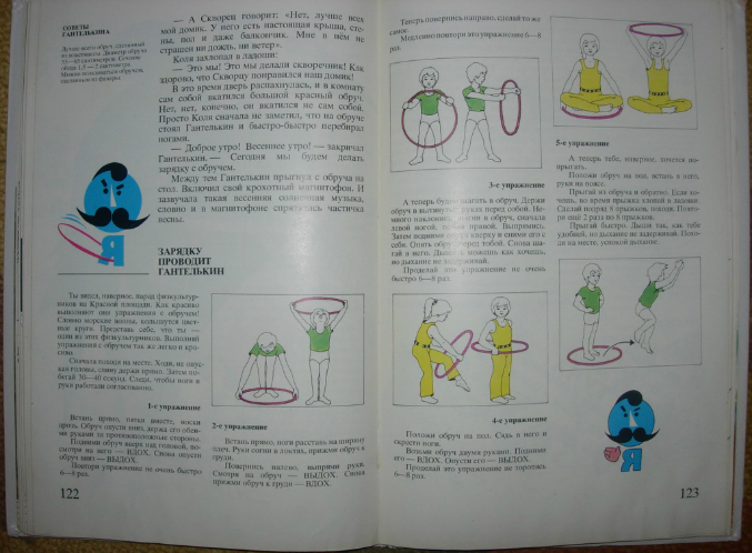 Сразу оговорюсь, мне иллюстрации и оформление совершенно не нравятся, зато нравится сама книга в плане текста :) Дочка про иллюстрации пока молчит, но книгу просит читать дальше и дальше. Текст - смесь стихов, сказок, всевозможных спортивных объяснений, всю книгу связывает сюжетная линия - бабушка учит внука здоровому образу жизни (и заодно всяческие советы для взрослых...) Издательство "Физкультура и спорт" 1989г.