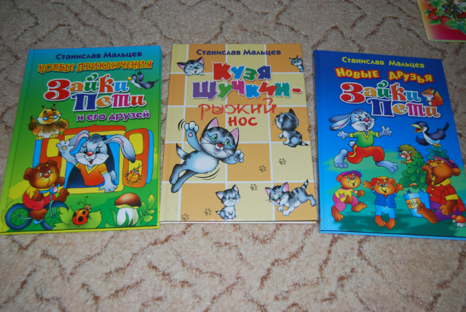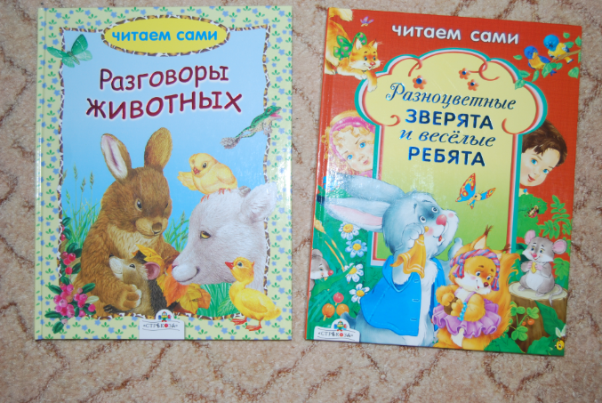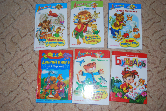 Логопедический букварь, разноцветные зверята(сутеев), любимые стихи, кузя щучкин-рыжий нос, две книжки про зайца петю, за лесами за горами.
