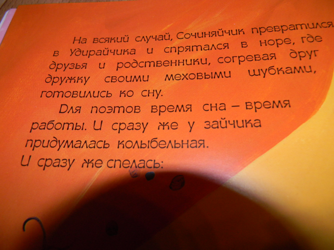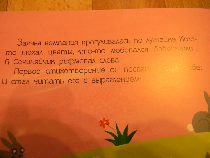 отзывыО книгах Джулии Дональдсон и Аксель Шеффлера мы с сыном (да и наш папа тоже:)) в восторге, я уже писала о них, поэтому когда вышли две новинки «Зайчик сочиняйчик» и «Что услышала божья коровка» я без раздумий заказала их, меня не смутил тот факт что иллюстратор другой, из-во тоже другое . Отзывов в интернет магазинах естественно не было, выложенных сканов тоже, но я была уверенна, что книги будут замечательные, а как же ведь автор то Дональдсон, и я взяла их в слепую (божья коровка к нам еще не приехала) поэтому напишу только про «Сочиняйчика» . Как говорится и на старуху бывает проруха…
