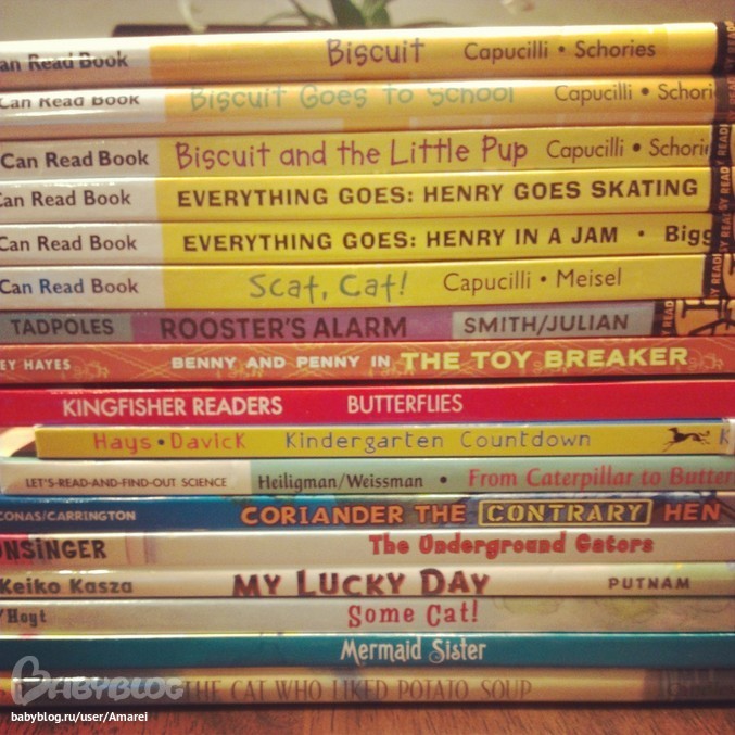 вот наши последние из библиотеки. если брать перед выходными, то за выходные все читаем. а если брать с понедельника, то на целую неделю получается растянуть. ПОловина книг что она сама может прочитать.