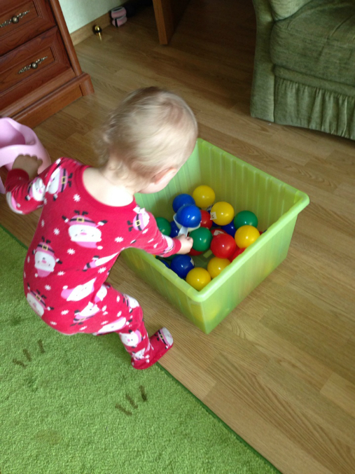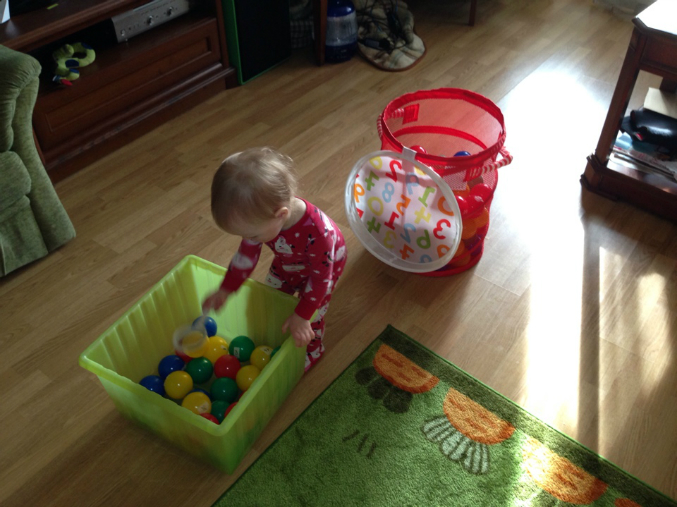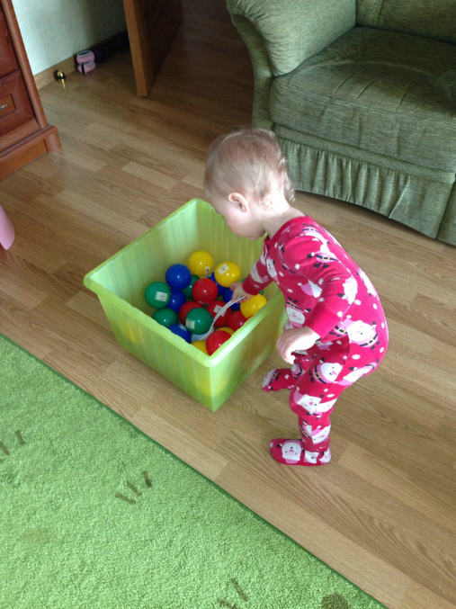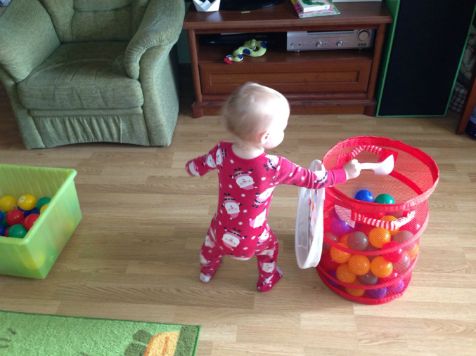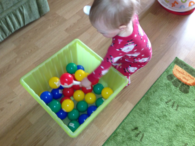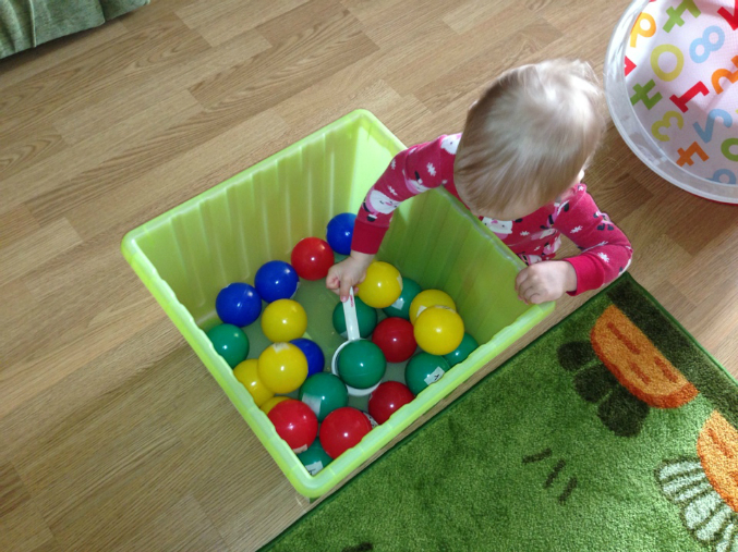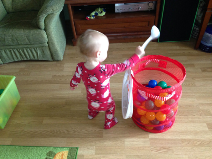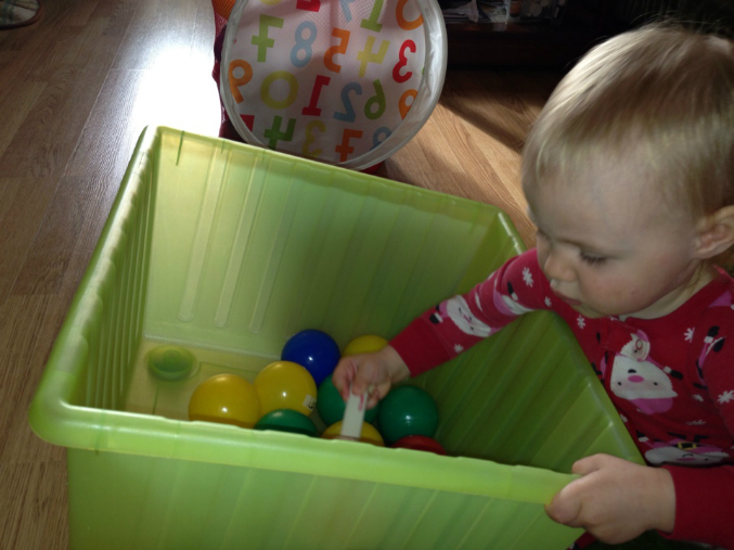 В преддверии Пасхи мы решили вспомнить старую русскую забаву и потренироваться с деткой в переносе "яиц")))