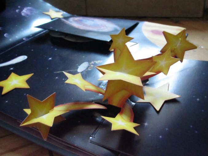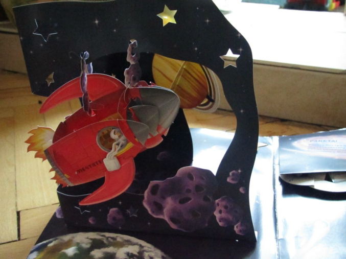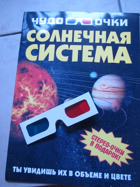 Книжка с эффектними картинками на которые надо смотреть через очки и тогда они становятся объемными. Очки на ребенка лет 6, но малышам тоже интересно, только очки приходится держать руками