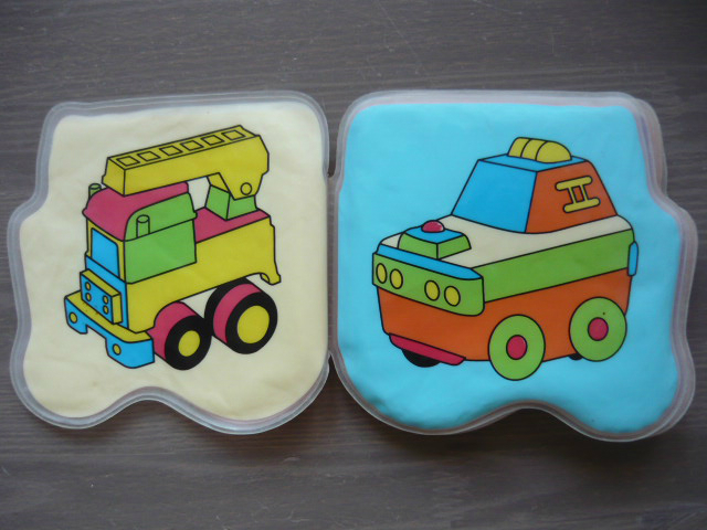 А эту книгу я покупала в беременному угаре каком-то. При очередном посещении Ашана мне внезапно приперло, что мой сын должен будет читать в ванной и читать именно про машинки. Не знаю, как я опознала тут машинки, и как сын их в итоге тоже опознает, но они жутковаты: