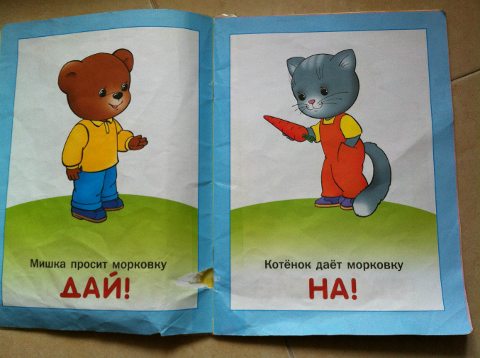 Дочка очень любит форзацы с рисунками, открывает любимые и говорит ГДЕ? Надо, значит, у неё спрашивать, где собачка, где лошадка и т.д.
