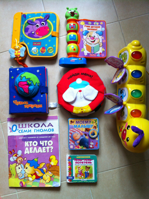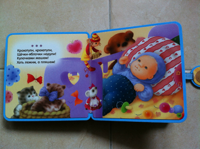Земной шар пищит, отгибаемые элементы либо шуршат, либо гремят, или имеют тактильную поверхность- гладкие, бархатные, из фетра. Правда, эти книги больше заинтересовали дочку после 1,5, чем до года.