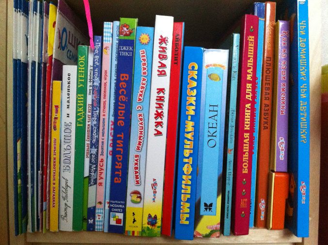 После года наконец началось настоящее чтение. Вот наши активные полочки от года до полутора: