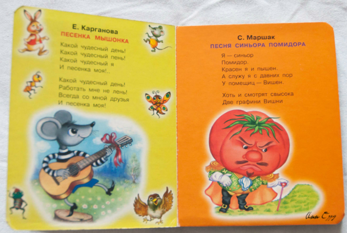 Картинки из этой книжки мне никогда не нравились, но она прижилась, даже не знаю почему, наверно потму что я люблю попеть, пока никто кроме сына меня не слышит))