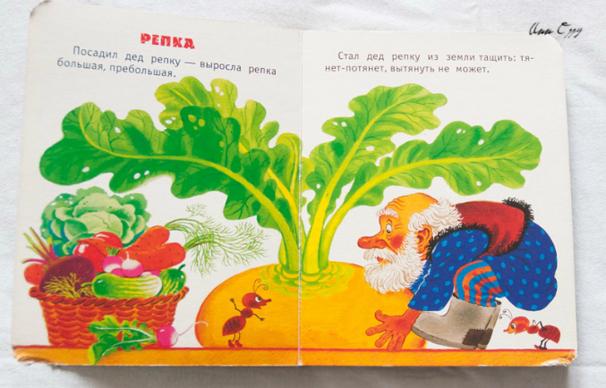 Куплиа в основном из-за колобка, который в рисунках моего любимого Савченко, но Репку и Курочку рябу, тоже читали отсюда.