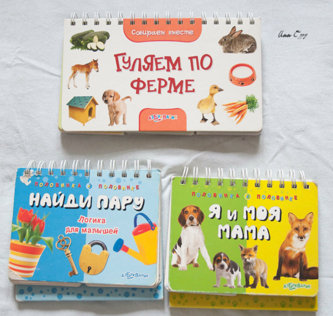 И чтоб на грустной ноте не заканчивать, покажу еще эти прекрасные книги. Они явно были нам не по возрасту, но смотреть мы их начали именно в возрасте до года.
