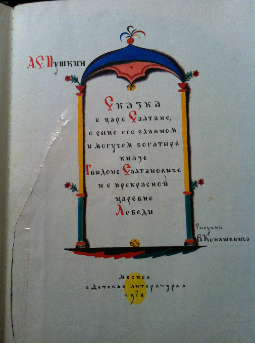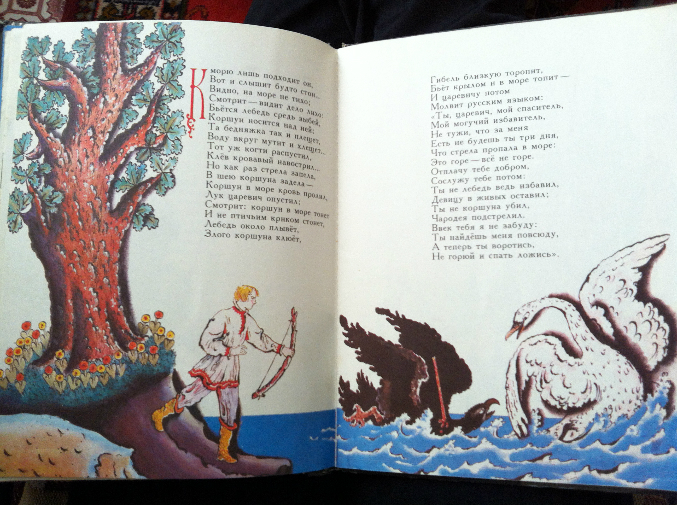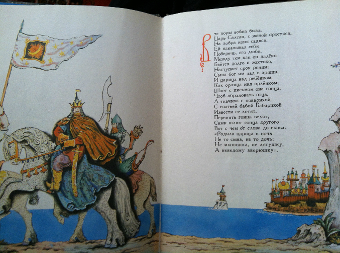 Красота! Мы купили новую книгу. Из старых есть только собраний сочинений Пушкина и отдельно тонкая книжечка "Сказка о царе Салтане" почти без иллюстраций..