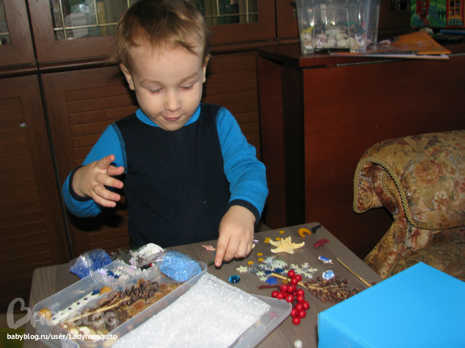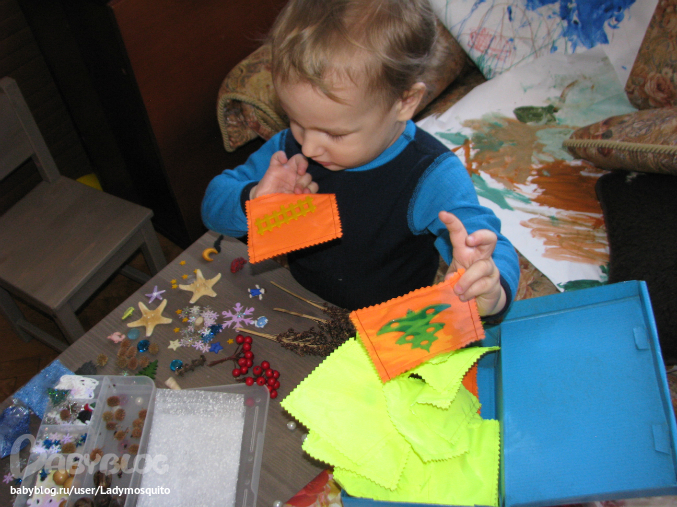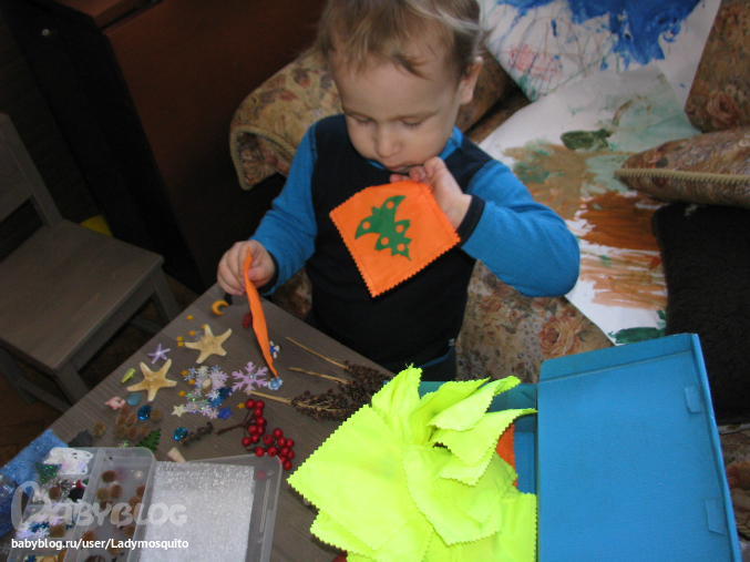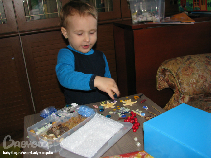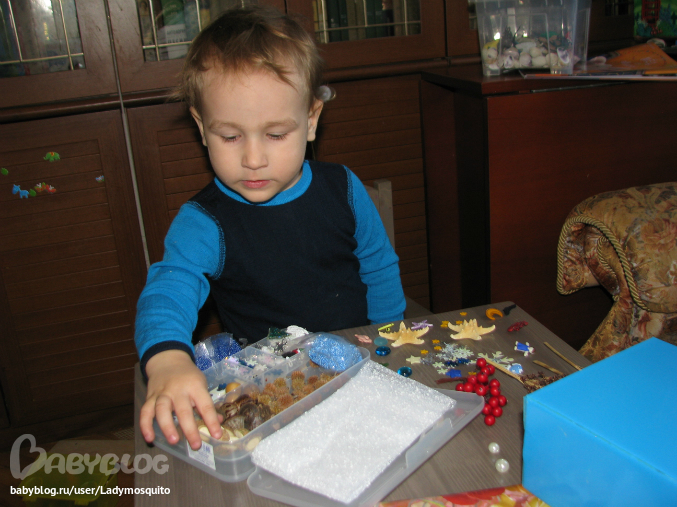 Пока сын потрошил сенсорную коробочку, я решила открыть синюю, ту, что справа на фото: