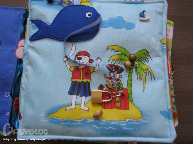 На последней странице карман для сокровищ с молнией и липучками, а сама книга тоже застегивается на замочек: