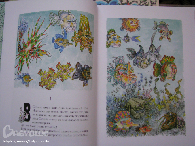 Страница с рыбами... ооо, видите, позади Льва - две рыбки - это наш хит сейчас, рыбки с нами всегда, они играют, на паровозе катаются, домики строят, с куклами из тарелок едят. Ребенок, конечно, сразу прихватизировал рыб, они, оказывается, снимаются. А у кита тоже есть секретики, а кокосы на пальме тоже на кнопочках!. Ребята, что было! Писк, визг, мы со Львом не могли книгу поделить! Непередаваемый восторг!