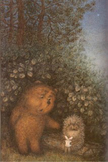 а моя наоборот просто влюблена в эту книжку, постоянно говорим про ежика, первый раз , когда читала, на моменте с совой и колодцом ухохатывалась) а иллюстрации это просто сказка