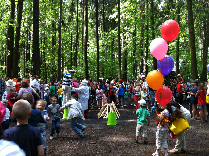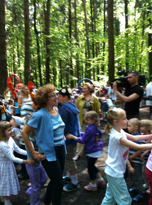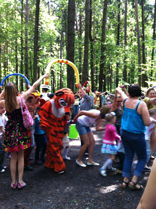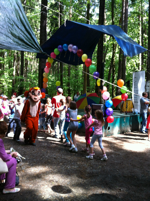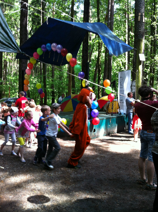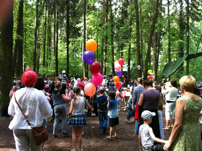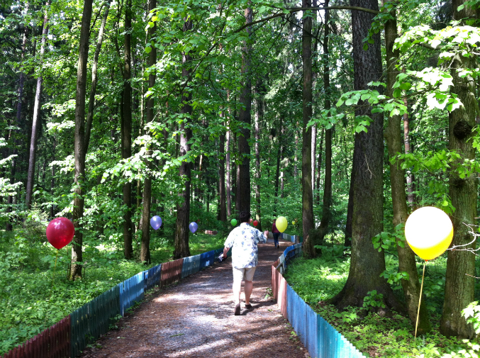 По этой дорожке, украшенной шариками (на обратном пути шариков уже не было, разобрали на память))), проходим вглубь территории к поляне, откуда слышны весёлые голоса и детские песни: