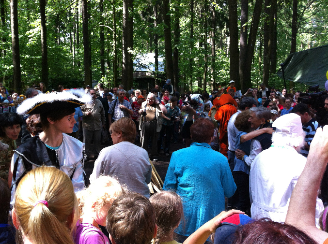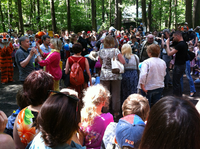 Так как нам пора баиньки, поехали домой, а на сцене начали выступать поэты))) Под бодрый голос Бородицкой зашагали домой))) Настроение у меня было отличное!!! Дочка ничего не поняла, но ростовые куклы её занимали))) Были там детишки и помладше нас, но в основном 5-10 летние.